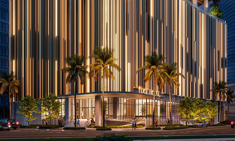 Es un condominio increíble en el área de Edgewater, con 592 residencias espaciosas. Presenta un diseño arquitectónico moderno concebido por Kobi Karp, con una superestructura suavemente cóncava acentuada por líneas horizontales prominentes; La base del edificio es visualmente impactante, revestida con elementos metálicos dorados verticales. Esta torre también cuenta con comodidades incomparables, que incluyen valet, recepción y conserjería las 24 horas, los 7 días de la semana, salón en el lobby con bar y café gourmet, terrazas junto a la piscina con áreas de descanso, actividades activas y opciones de piscinas tranquilas que ofrecen vistas del horizonte de la ciudad, gimnasio, estudio de yoga, espacios de trabajo compartido y más. La firma desarrolladora es Grupo T&C. La conveniente ubicación de Edge House significa proximidad a opciones culturales y de entretenimiento como el Centro de Artes Escénicas.